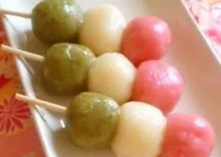 Boil the dumplings, cool, then drain. Skewer the dango and serve.