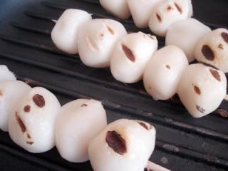- Grill the skewered dumplings on a grill or a grill pan, turning several times, until nice burn marks form over them.
