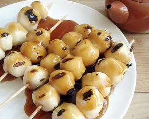 - Pour the sauce over the still warm skewered dumplings. They are best eaten right away, but you can make them in advance too, as long as you bring them to room temperature before eating. The dumplings can also be eaten grilled and just brushed with soy sauce. Apparently, this is the way they were eaten until sometime in the 20th century. (Mitarashi dango as we know them now were invented in the 1930s at a dango shop in the Kansai area.)