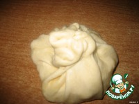 - Замешиваем мягкое тесто, чуть липнущее к рукам. Формуем его в шар, заворачиваем в пленку и оставляем отдохнуть на полчаса