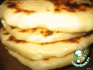 - В центр кладем шар начинки, размер которого определяем так - края лепешки должны собраться над этим шаром и защипнуться. Полученный круглый пирожок кладем защипом вниз и прокатываем скалкой до диаметра вашей сковородки.