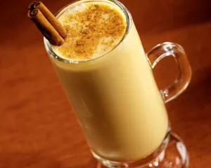 - Place the cinnamon stick in the milk. Heat the milk on the stovetop in a large sauce pan until just simmering. One cup of the milk can be replaced with heavy cream. This will create a thicker eggnog. Add the spices, vanilla, and molasses.