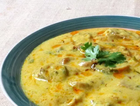 - Now cook the curry on low heat for 20 minutes without a lid, keep stirring to avoid curdling.