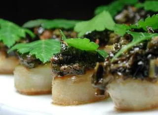 Drizzle a little of the sauce over each scallop, distributing the herbs evenly.